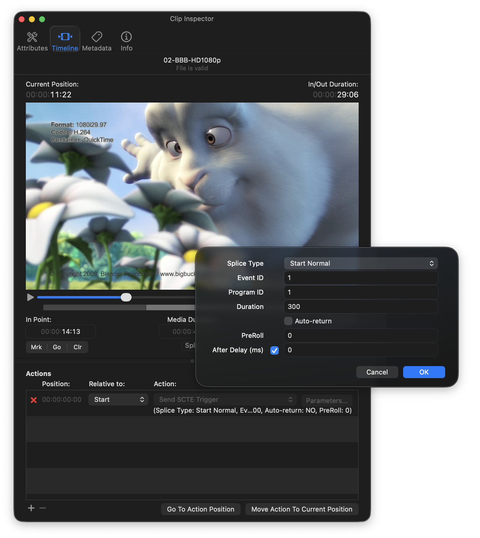 end ActionThe splice_insert_type will be defined in the OnTheAir Video inspector: